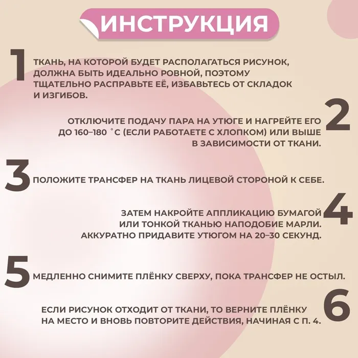 - Если рисунок отходит от ткани, то верните плёнку на место и вновь повторите действия, начиная с п. 4.