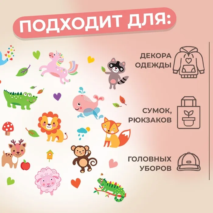 Термонаклейка «Весёлый зоопарк», 19.5×21 см, 14 дизайнов — Характеристики