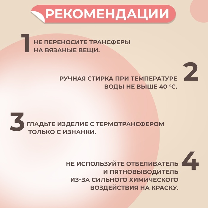 - Гладьте изделие с термотрансфером только с изнанки.
