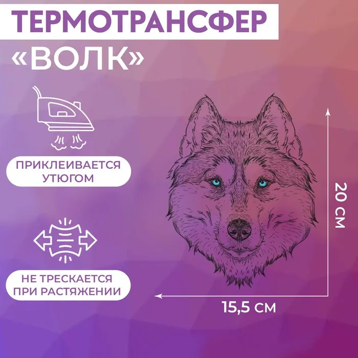 Термонаклейка «Волк», 15.5×20 см, чёрная, белая — Характеристики