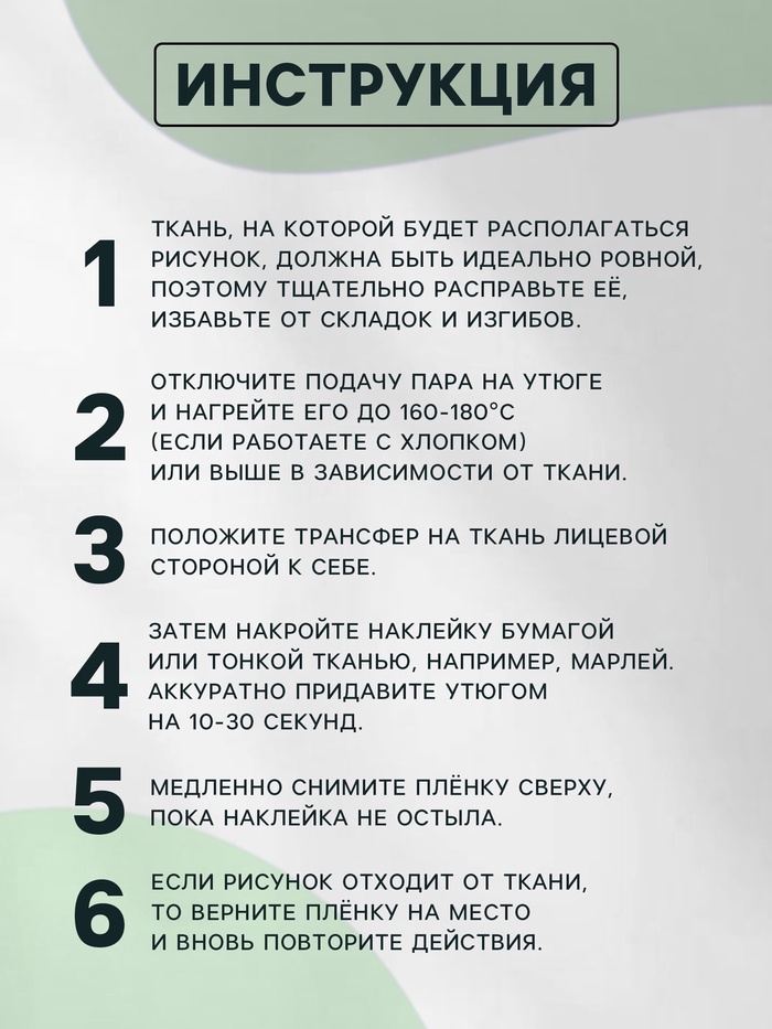 - Если рисунок отходит от ткани, то верните плёнку на место и вновь повторите действия, начиная с п. 4.