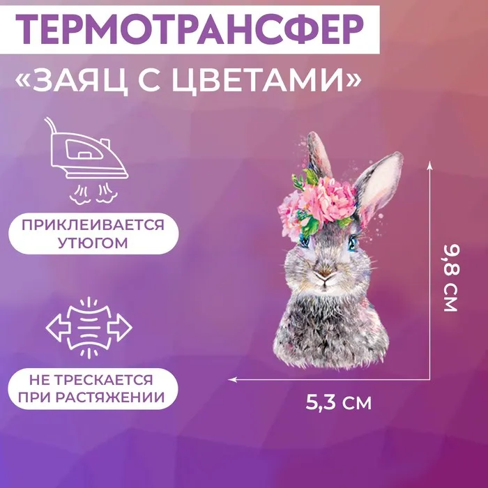 Термонаклейка «Заяц с цветами», 5.3×9.8 см — Характеристики