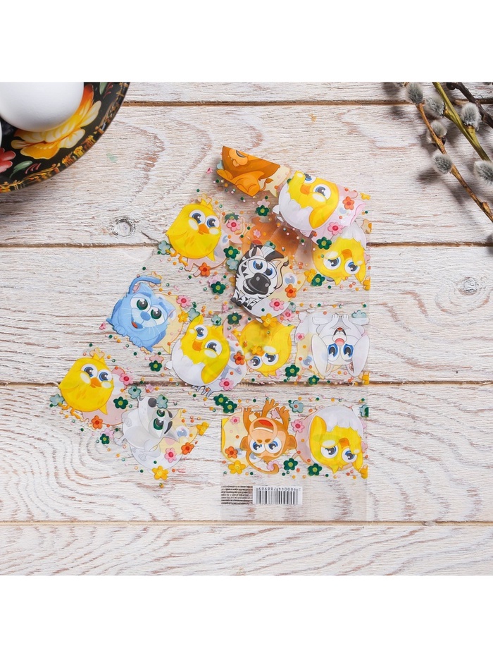 Термонаклейки на 7 яиц «Цыплята и друзья» на пасху, 7,3 х 34,2 см. — Характеристики