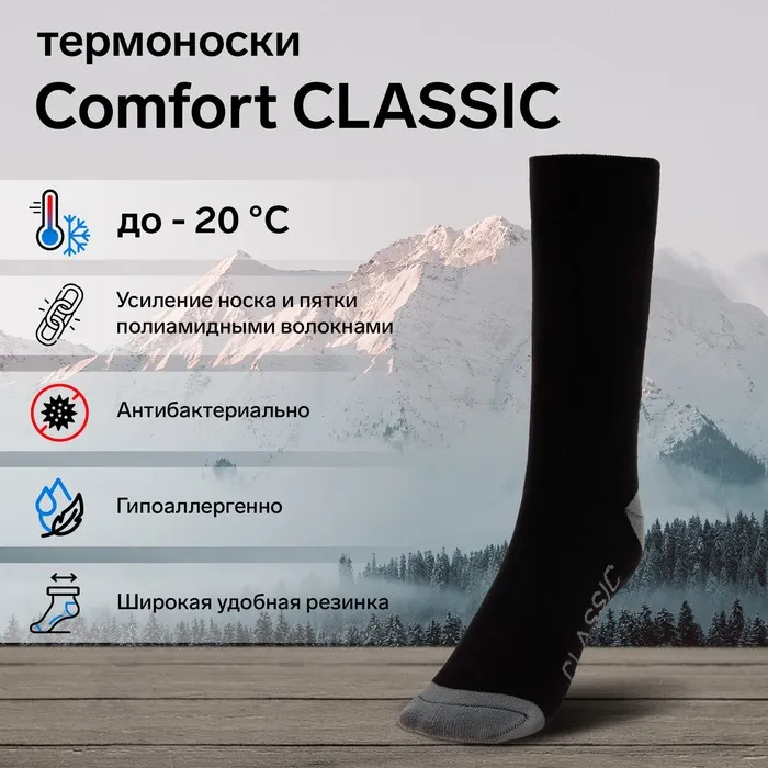 Классические мужские термоноски Comfort Classic (Комфорт Классик) рекомендуются на каждый день или для выхода на природу, в поход, активного времяпровождения при минусовой температуре до -20 градусов.