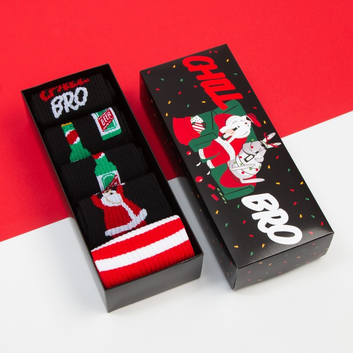 Носки мужские новогодние KAFTAN Chill bro, набор 5 пар, размер 41-44 (27-29 см)