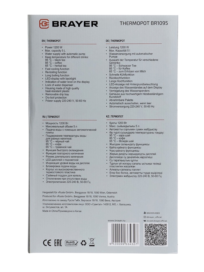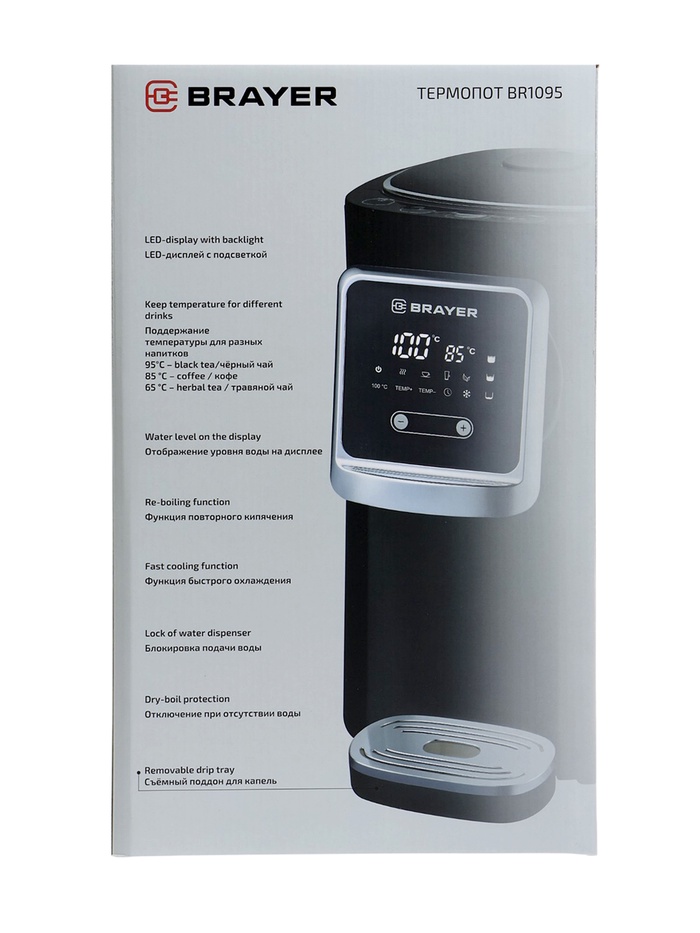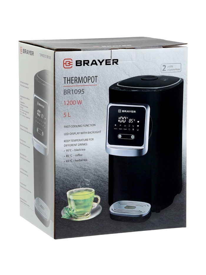 Термопот BRAYER 1095BR, 5 литров, 1200 Вт, LED-дисплей, охлаждение, поддержание температуры, чёрный — Характеристики