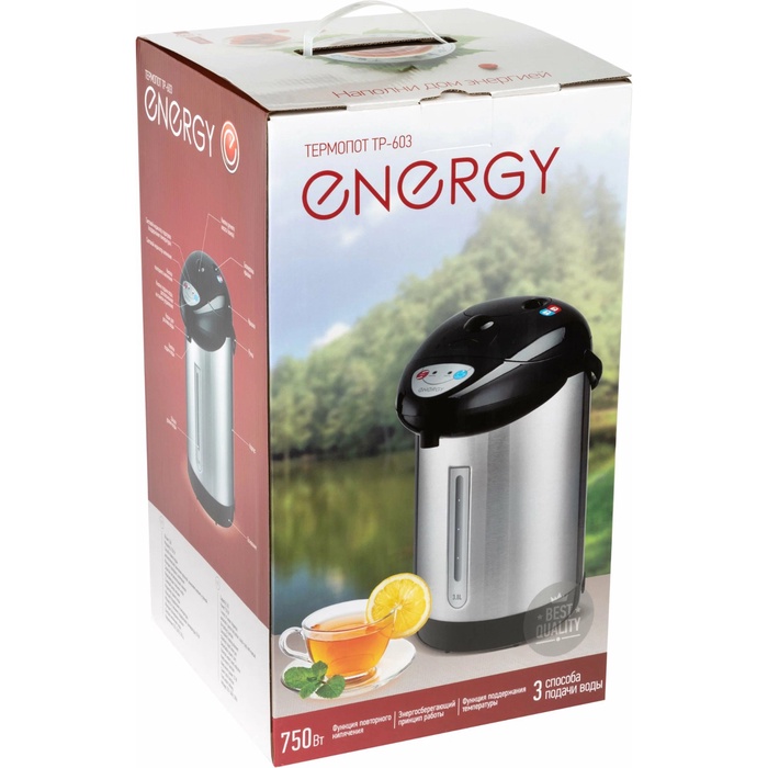 Термопот Energy TP-603, 3.8 л, 750 Вт, серебристый — Характеристики