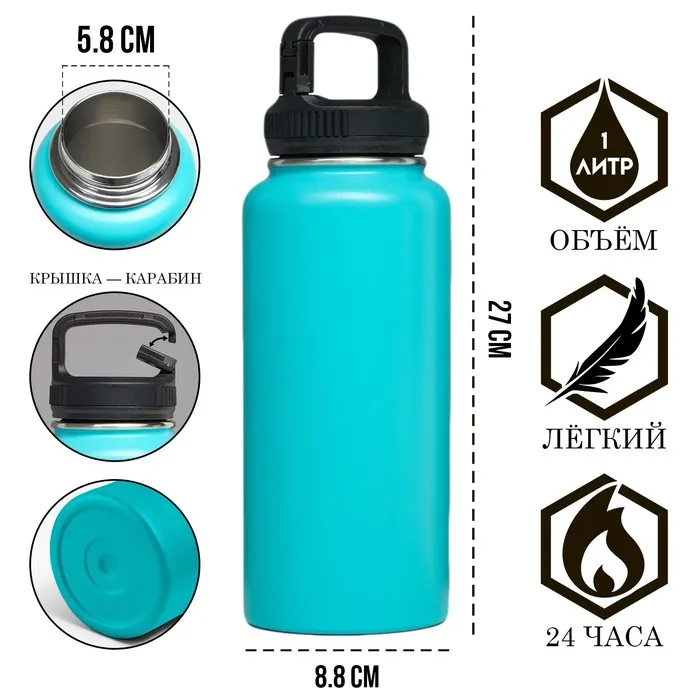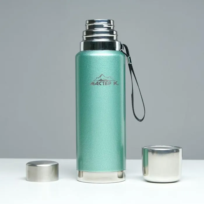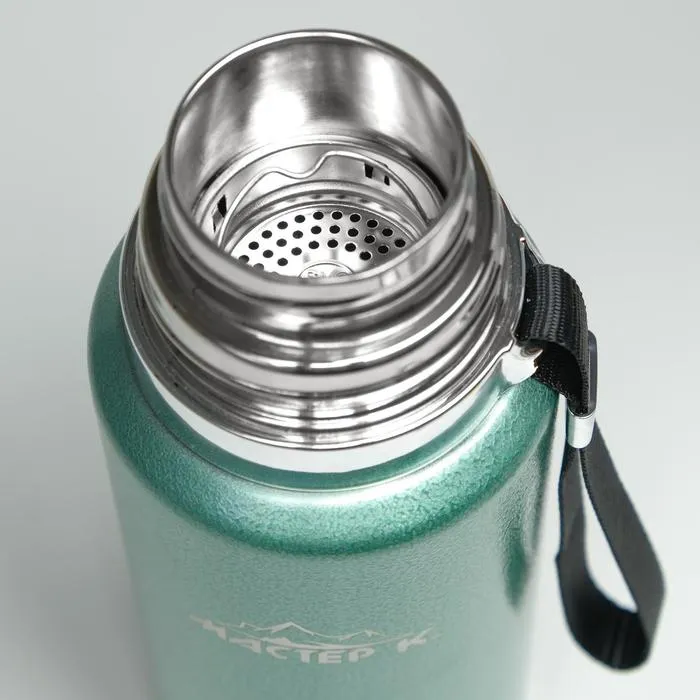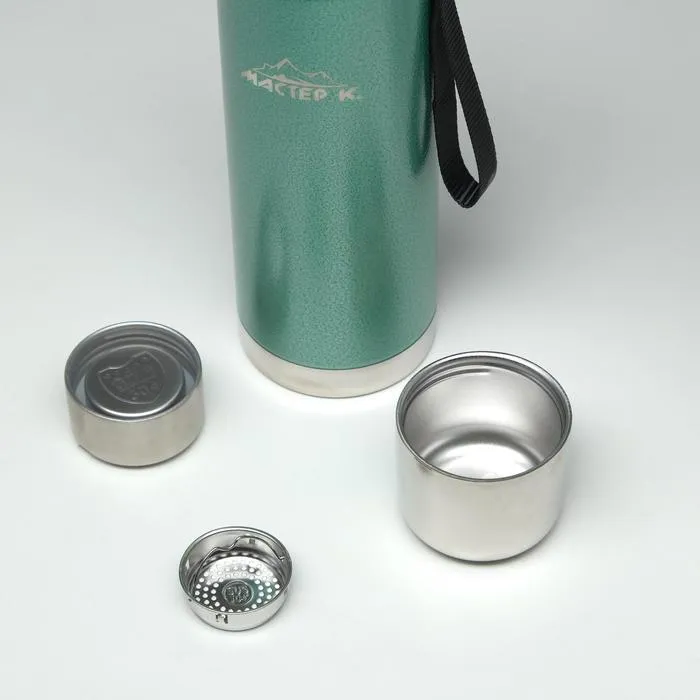 Термос, 1 л, Путешествие "Мастер К.", с кружкой и ситечком, сохраняет тепло 48 ч, зелёный — Характеристики