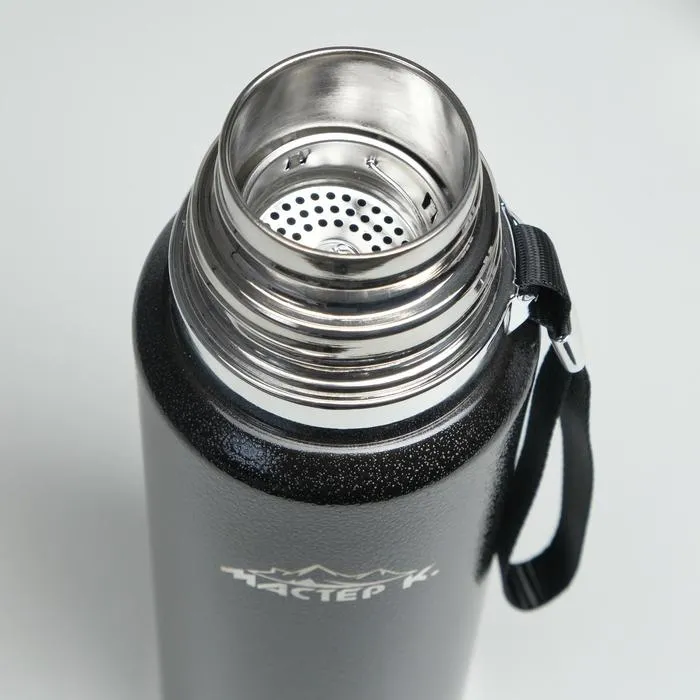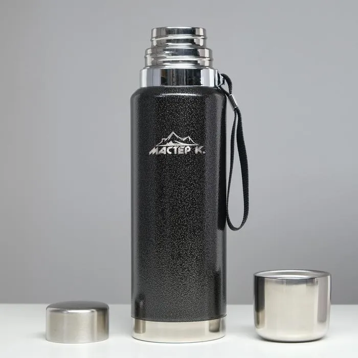 Термос, 1 л, Путешествие "Мастер К.", с кружкой, сохраняет тепло 48 ч, чёрный — Характеристики