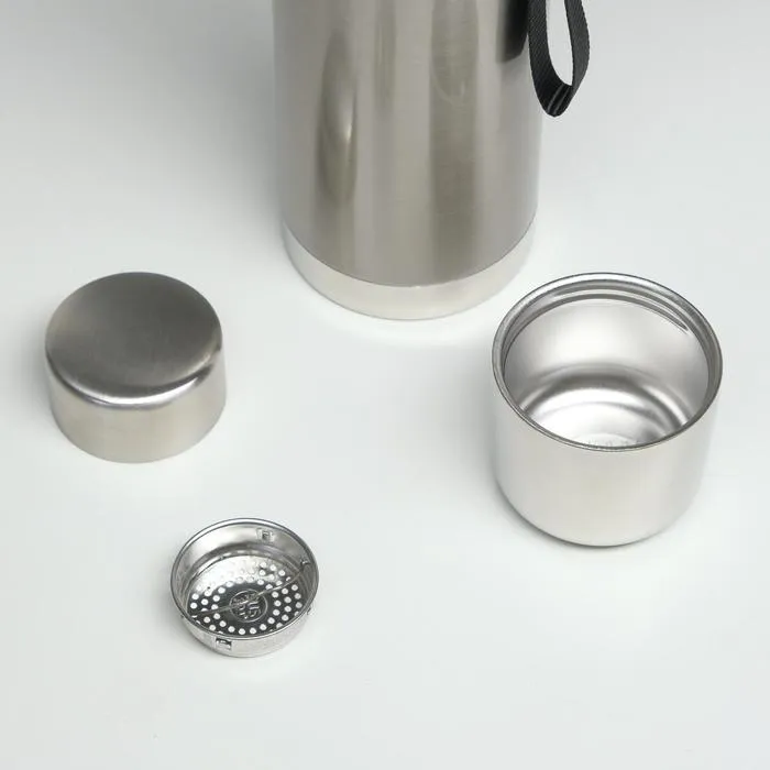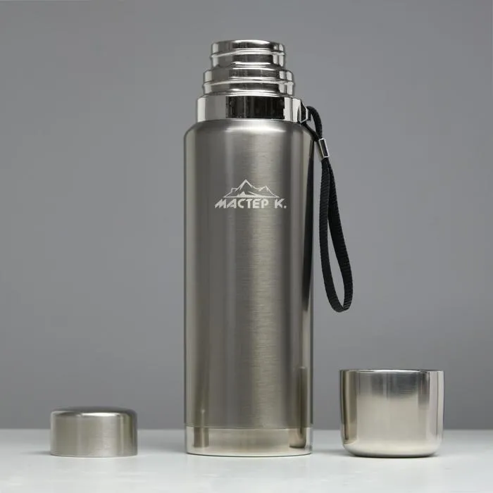 Термос, 1 л, Путешествие "Мастер К.", с кружкой, сохраняет тепло 48 ч, хром — Характеристики