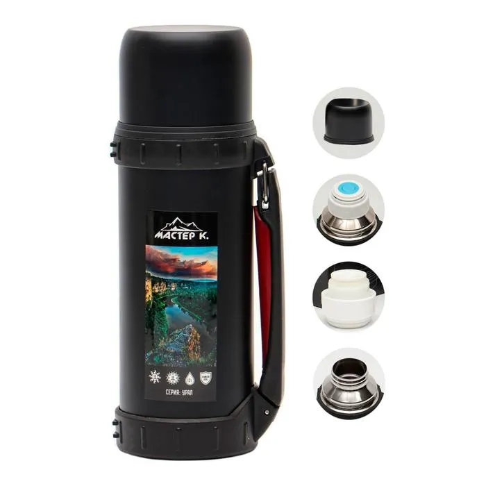 Термос, 1.2 л, Движение, "Мастер К. Урал", с кружкой, сохраняет тепло 18 ч, 9.8 х 29 см, чёрный 5248 — Характеристики