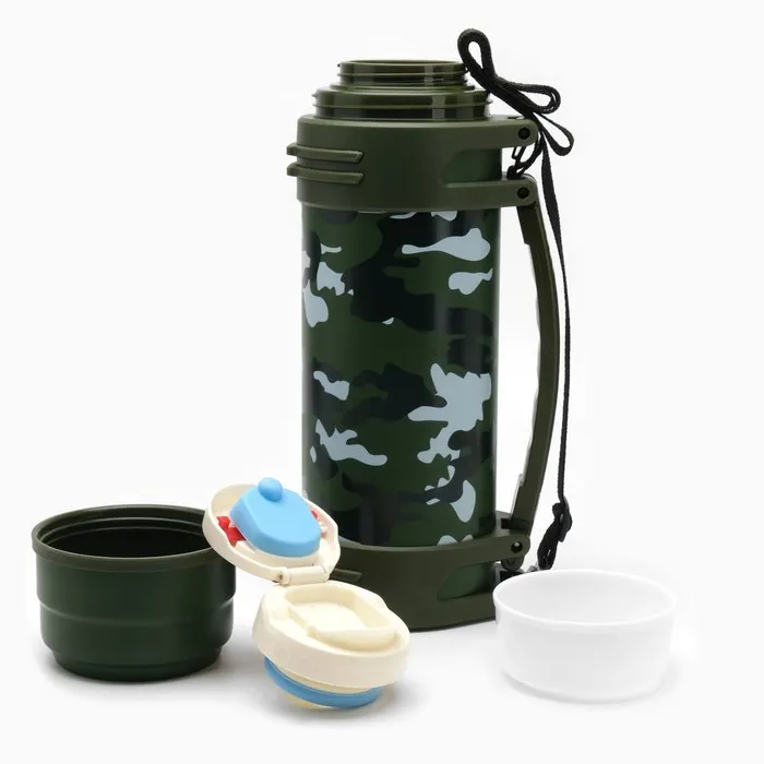 Термос, 2 л, Тропа "Камуфляж", с двумя кружками, с ремешком, сохраняет тепло 24 ч, 13.5х36см — Характеристики