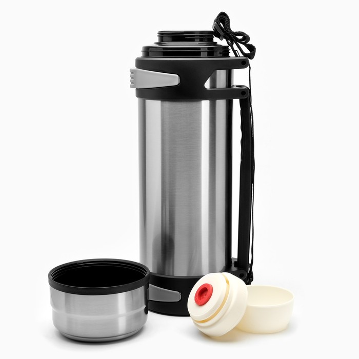 Сохраняет тепло горячих и холодных напитков до 24 часов благодаря высококачественным материалам – нержавеющей стали, пластику и силикону. Герметичная крышка предотвращает протекание, а ремешок из текстиля делает термос удобным для переноски.