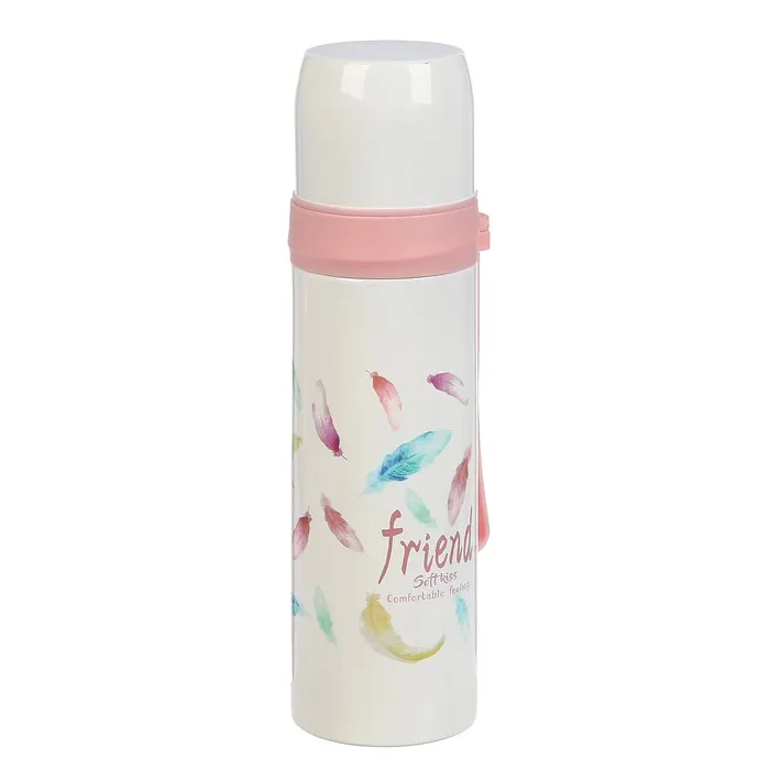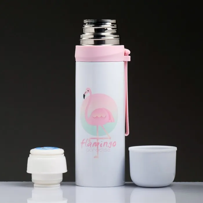 Термос, 500 мл, Гильза "Фламинго", с кружкой, сохраняет тепло 12 ч, 6.5 х 24 см, микс — Характеристики