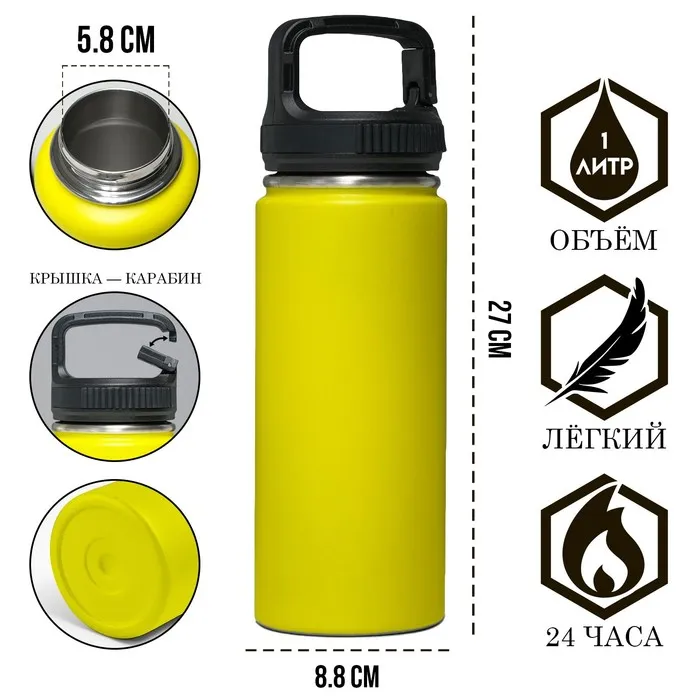 Термос, 550 мл, Карабин, сохраняет тепло 24 ч, голубой — Характеристики