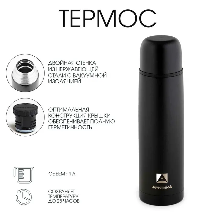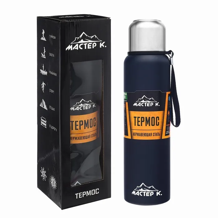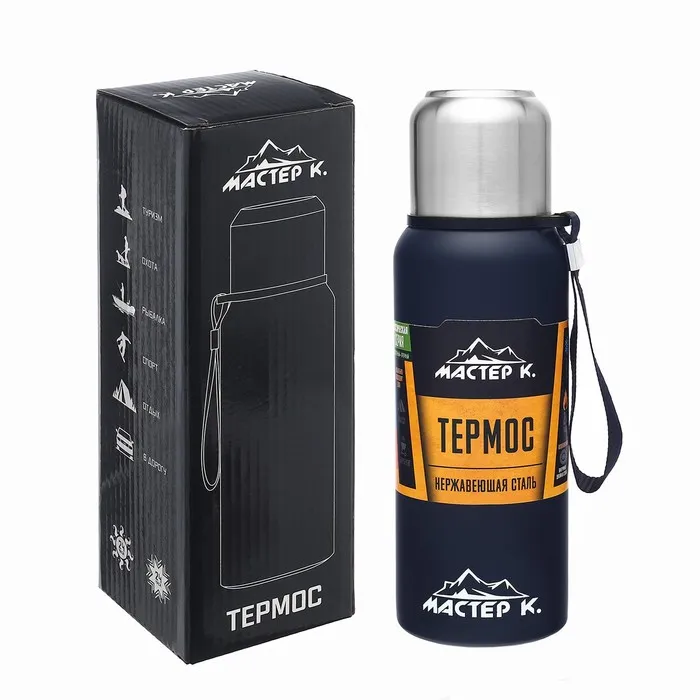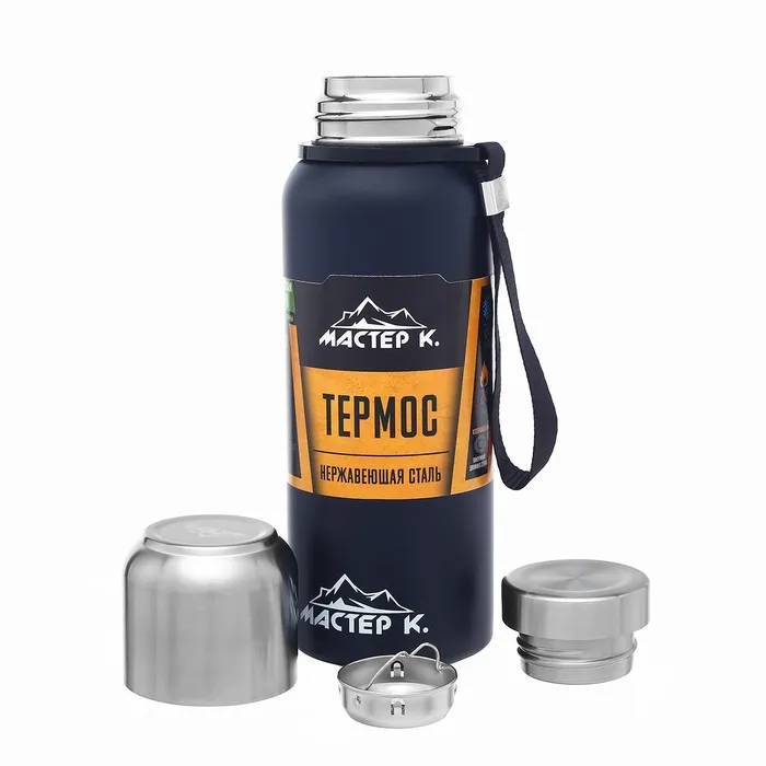 Термос, 600 мл, Путешествие "Мастер К.", с кружкой, сохраняет тепло 24 ч, темно-синий — Характеристики