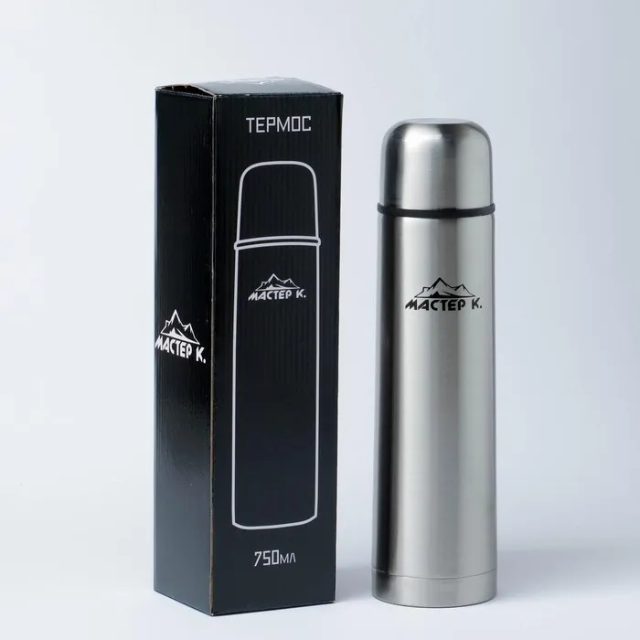 Термос 750 мл "Мастер К" изготовлен из высококачественной нержавеющей стали, имеет двойные стенки, обеспечивающих вакуумную термоизоляцию. Легкий и прочный термос "Мастер К" сохранит ваши напитки горячими или холодными надолго. Это идеальный выбор для тех, кто хочет наслаждаться горячими напитками во время отдыха на природе или в поездках, напиток останется теплым и свежим, готовым к наслаждению в любой момент. Термосы этой серии пользуются большой популярностью у активных и динамичных пользователей, а также у любителей охоты и рыбалки, так как они, сохраняют прочность и термоустойчивость, легки и компактны.