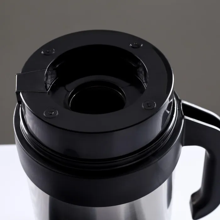 - Наливается напиток в крышку-чашку, достаточно повернуть резьбовую пробку вполоборота.