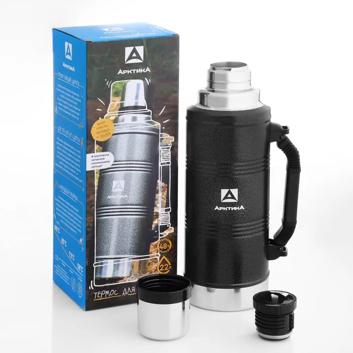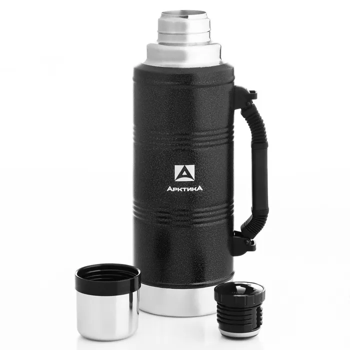 Термос "Арктика. Уазик", 2.2 л, с ручкой, сохраняет тепло 48 ч, черный выполнен в традиционном американском стиле с ударопрочным покрытием и ручками для удобного использования.