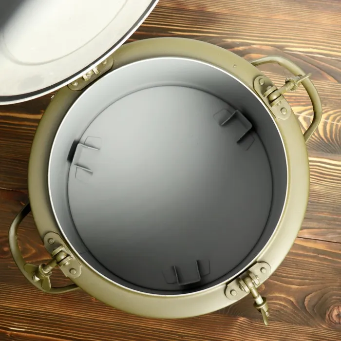 Универсальный армейский термос станет вашим надежным спутником в любых условиях. Его объем в 25 литров позволяет взять с собой достаточно пищи и напитков для длительных походов или выездов на природу.