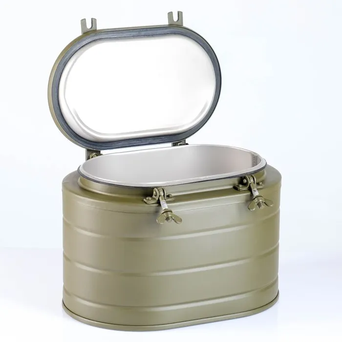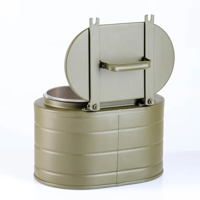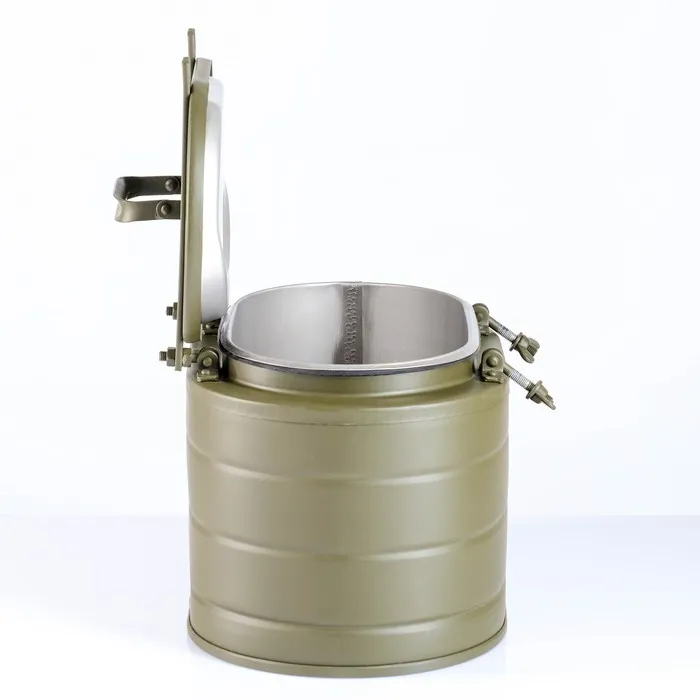 Армейский термос подходит для использования в полевых условиях. Изделие изготовлено из антикоррозийной стали, на поверхность корпуса нанесено атмосферостойкое лакокрасочное покрытие. В конструкции отсутствуют бьющиеся и хрупкие детали.
