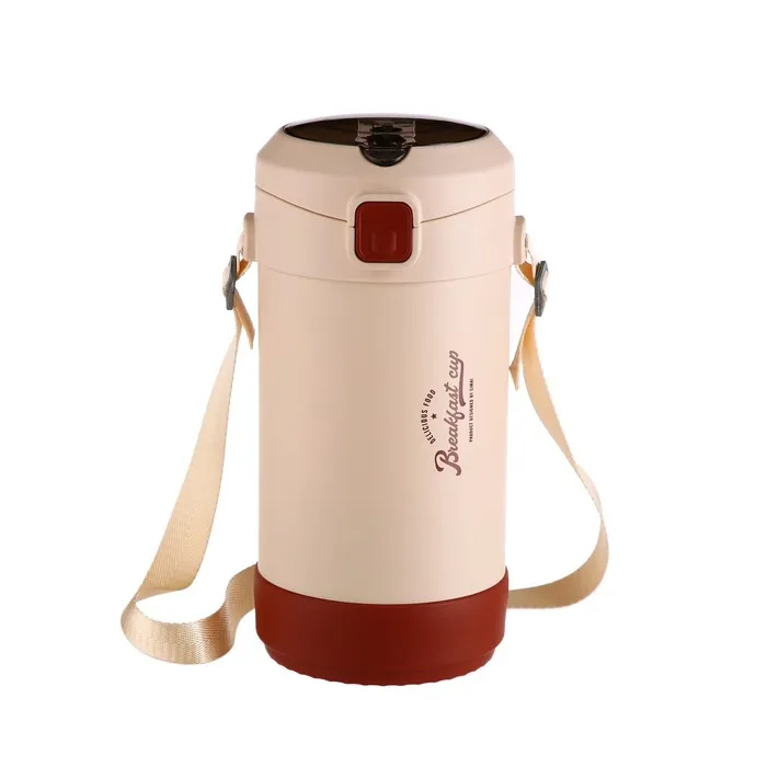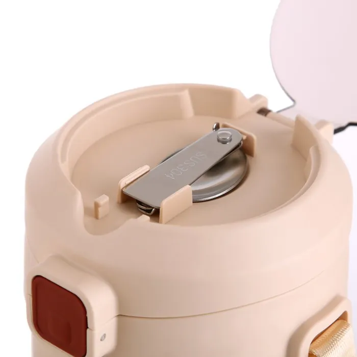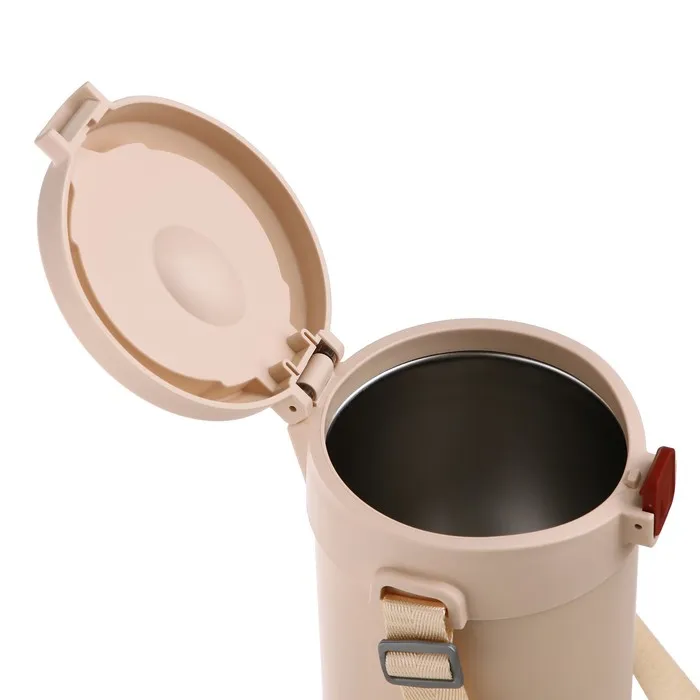 - Комфорт в использовании: наличие кнопки и ремня делает переноску термоса ещё более удобной.