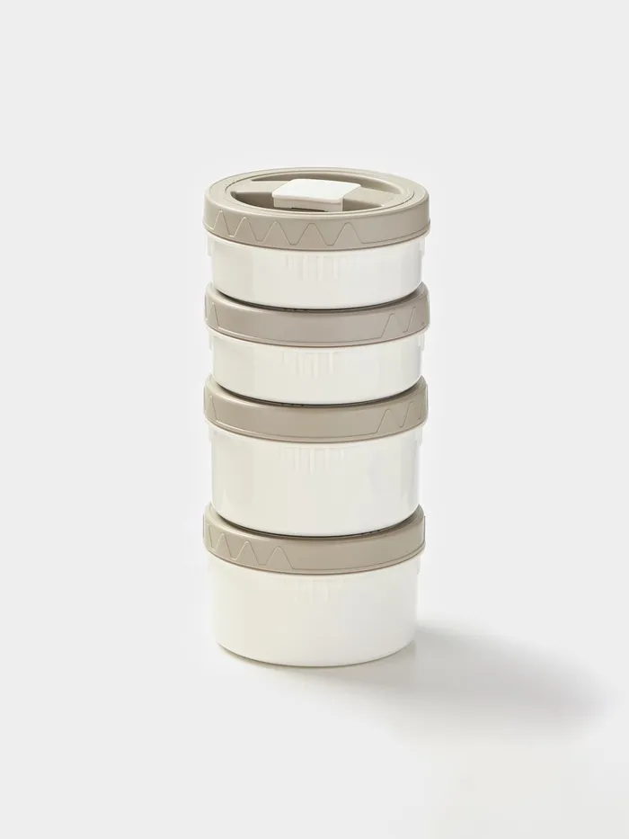 - Четыре контейнера: удобное разделение продуктов для сохранения их свежести.