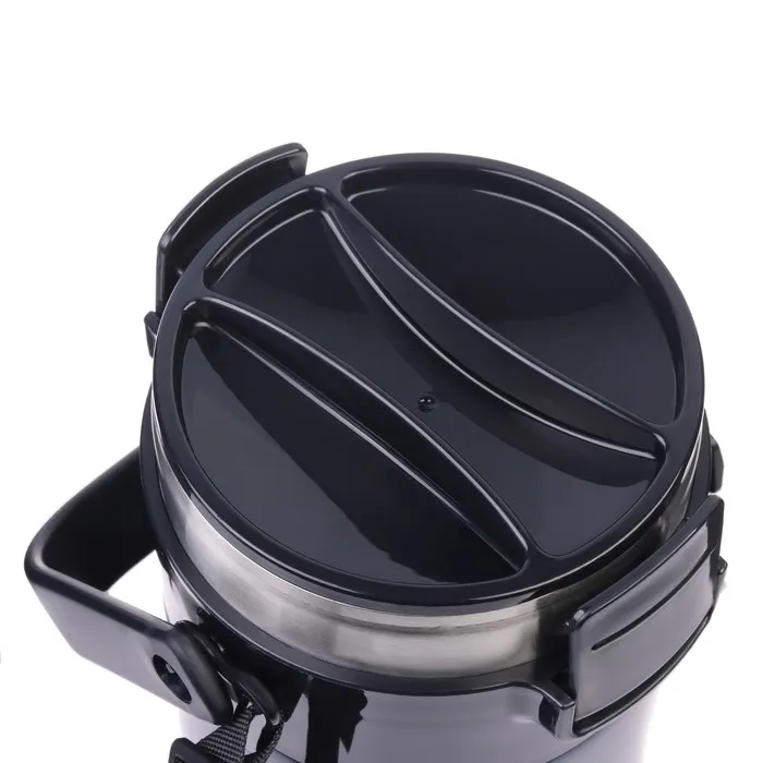 Термос для еды оснащен четырьмя контейнерами, что позволяет разделять продукты и сохранять их свежими. Герметичная крышка обеспечивает надежную защиту от протечек, так что его можно спокойно носить в сумке.