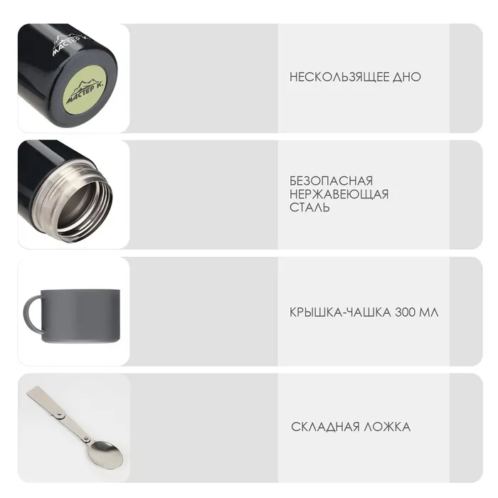 Термос для еды Мастер К, 550 мл, 17×11 см, нержавеющая сталь, чёрный — Характеристики