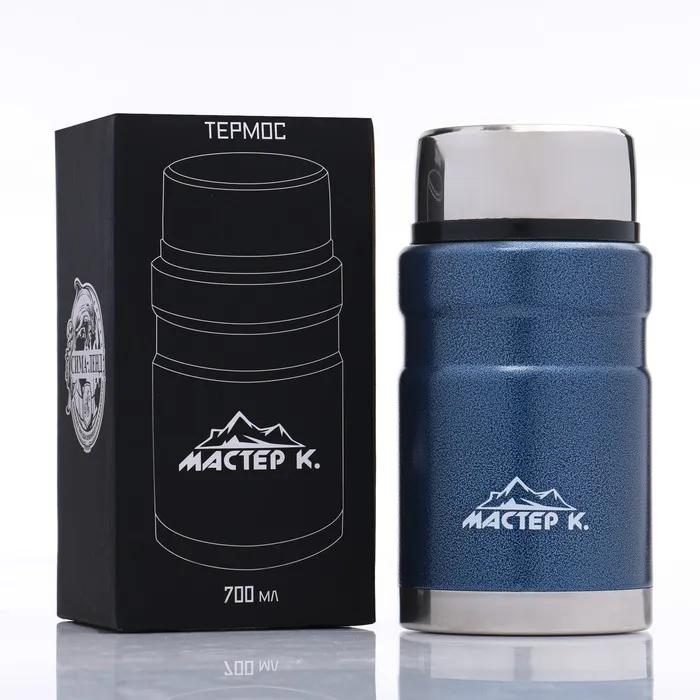 Термос для еды Мастер К, 700 мл, нержавеющая сталь, синий — Характеристики