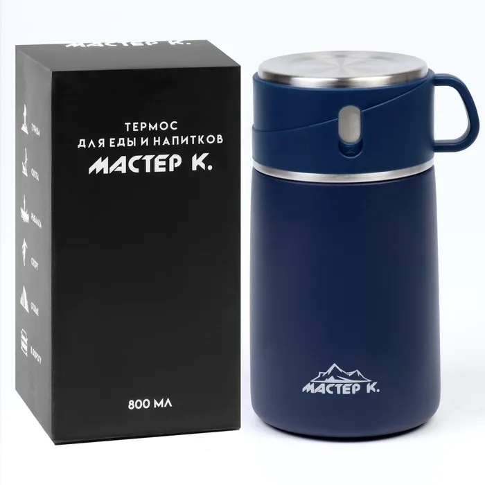 Термос для еды Мастер К Adventure, 800 мл, нержавеющая сталь, синий — Характеристики