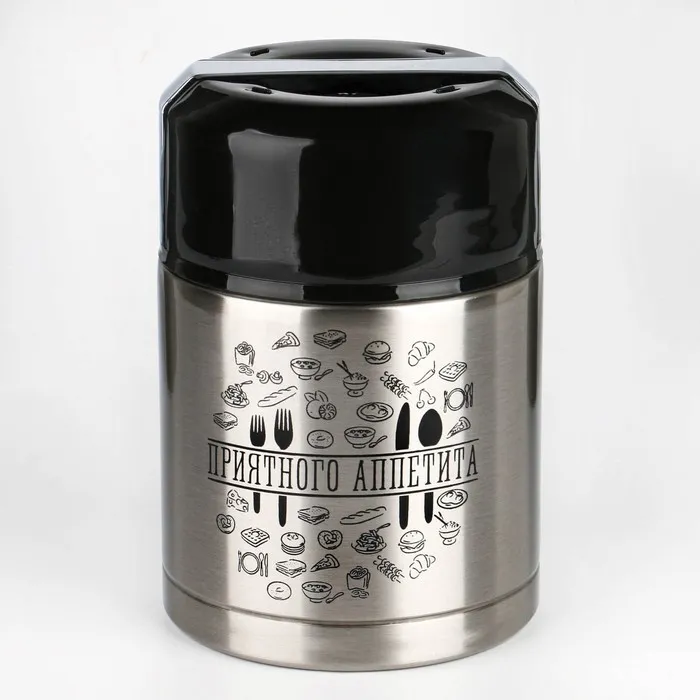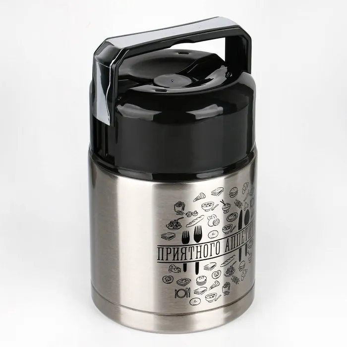 Термос для еды Мастер К «Приятного аппетита», 800 мл, нержавеющая сталь, серебристый, чёрный — Характеристики