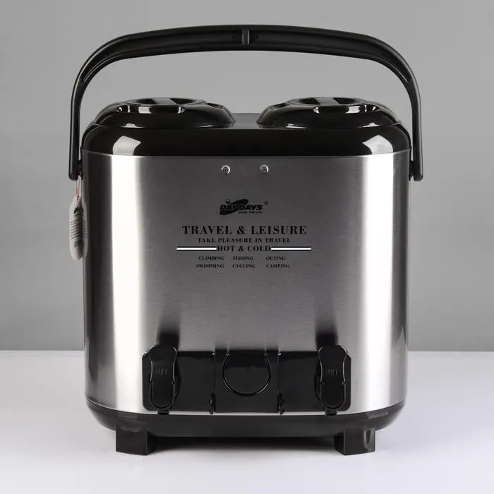 Термос двухсекционный, 15 л, металл, 4 стакана, 2 крана, МИКС — Характеристики