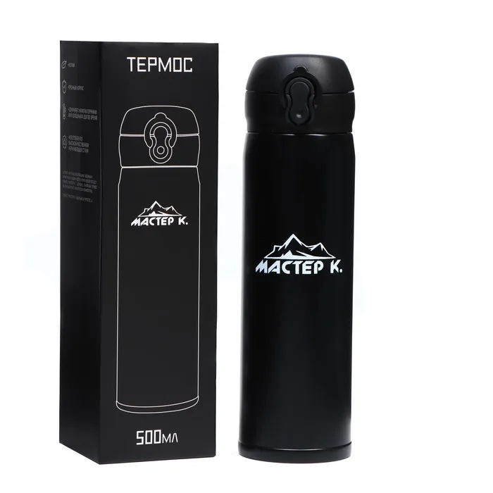 • Термос Мастер К «Топ», 500 мл, 6.3×24.5 см, сохраняет тепло 8 ч, нержавеюща сталь, чёрный — Характеристики