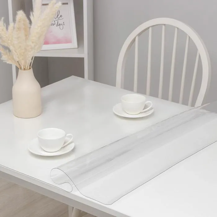- Изделие почти незаметно на поверхности, оно обладает практически стеклянной прозрачностью. Поэтому подходит для столов с красивыми природными текстурами или узорами.