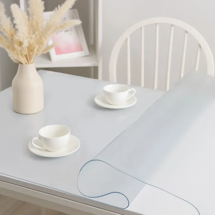 - Изделие почти незаметно на поверхности, оно обладает практически стеклянной прозрачностью. Поэтому подходит для столов с красивыми природными текстурами или узорами.