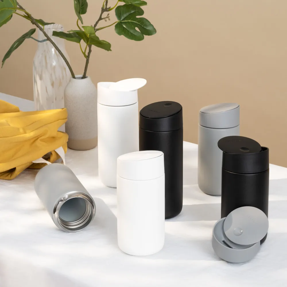 Отправляйтесь в путь! Термокружка Fellow Carter Move стала еще удобнее благодаря уникальной крышке, которая легко открывается одним движением пальца. Она надежно сохраняет тепло и аромат вашего напитка.