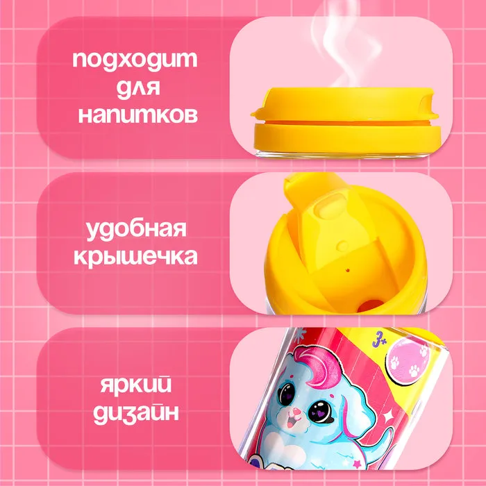 Термостакан детский «У меня лапки», с вставкой и игрушкой, жёлтый, 350 мл — Характеристики