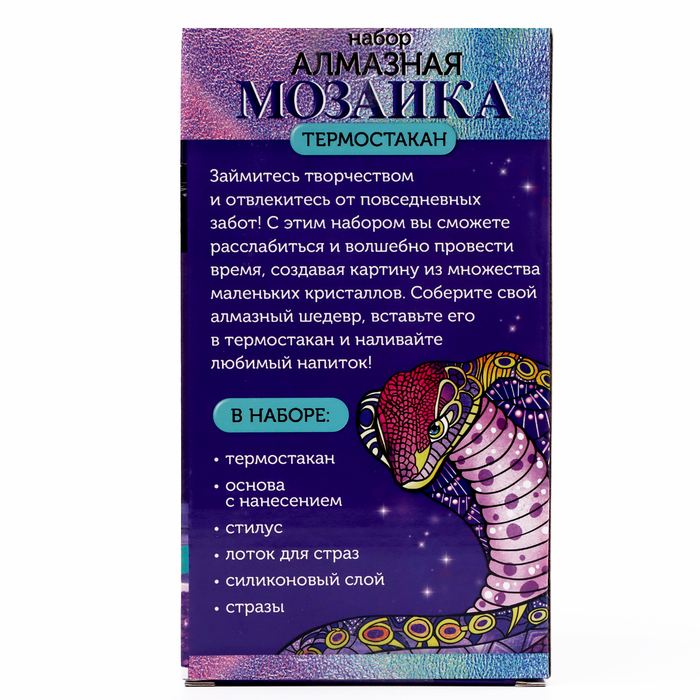 Алмазная мозаика «Змея» — это увлекательное занятие для взрослых и детей. Создайте свою уникальную картину на Новый год, украшая термостакан сверкающими стразами. Это не просто хобби, а настоящий арт-терапевтический процесс, который поможет расслабиться и отвлечься от повседневной суеты.