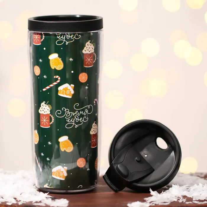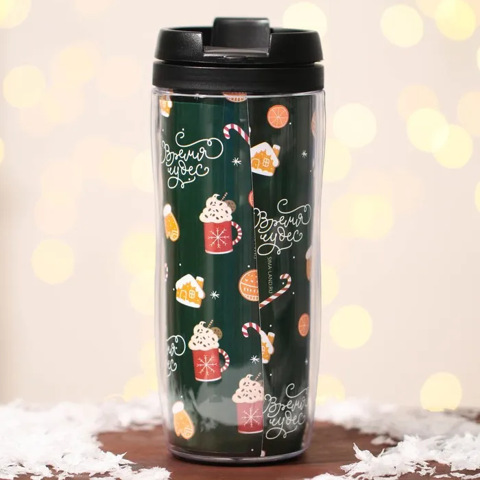 Термостакан пластиковый новогодний «Время чудес», 350 мл