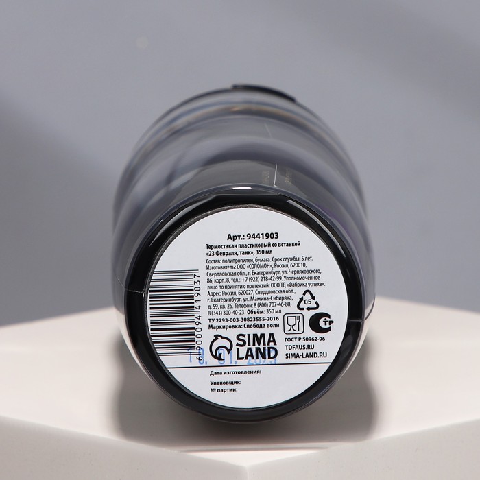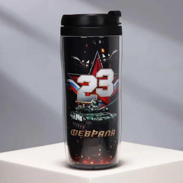 Термостакан пластиковый со вставкой «23 февраля. Танк», 350 мл — Характеристики