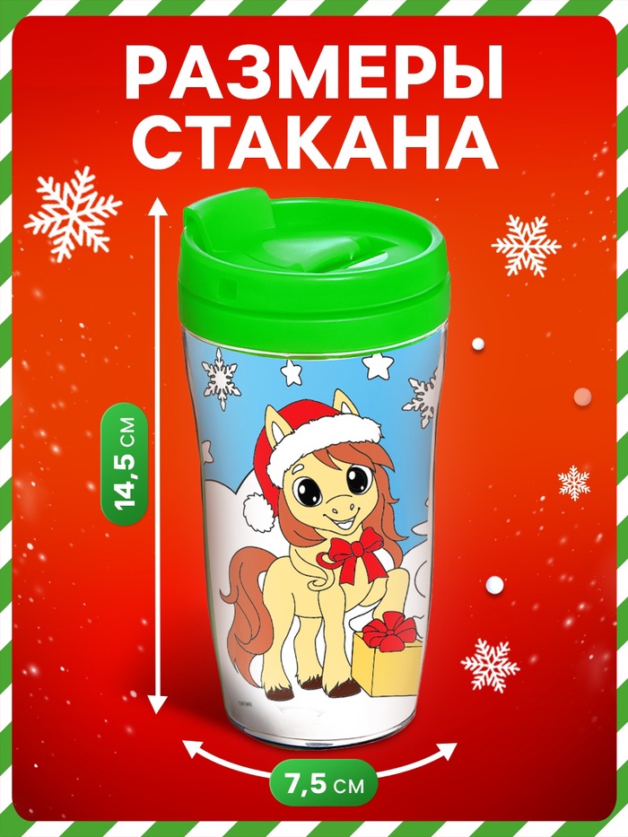 Термостакан-раскраска «С Новым годом! Лошадь», 250 мл, с мелками, цвет зелёный — Характеристики