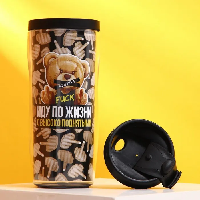 Термостакан со вставкой «Иду по жизни с высоко поднятыми», 350 мл