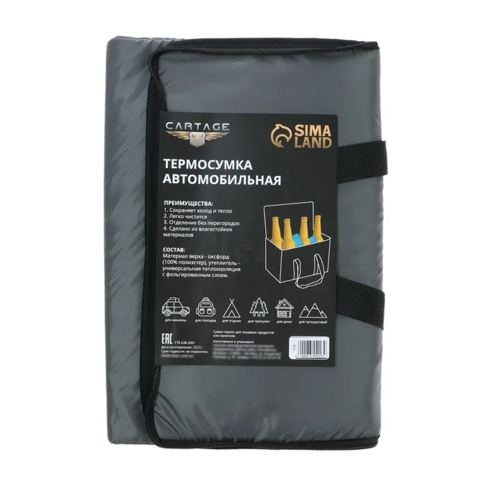 Сохранить продукты свежими, охлажденными или даже замороженными вне дома и без стационарного холодильника можно легко и просто при помощи термосумки Cartage! Термосумка Cartage Т-11 устроена по принципу термоса, причем, такой аксессуар может не только поддерживать низкие температуры, но и сохранить продукты горячими. То есть, вы всегда сможете полакомиться мороженным на пляже, угостить друзей теплой пиццей на пикнике за городом, и пообедать горячим супом на работе. Термосумка устроена очень просто – она имеет внутри изоляционный антибактериальный фольгированный слой, в случае если в сумке разлился напиток, или вытекло варенье, достаточно просто протереть сумку влажной тканью, или антибактериальной салфеткой. Такой сумкой очень удобно пользоваться, если вы ведете активный образ жизни и много времени проводите в дороге и на ногах. Для более долгого сохранения низких температур, советуем использовать аккумуляторы холода.