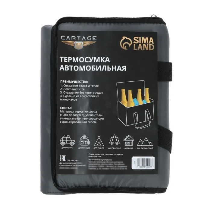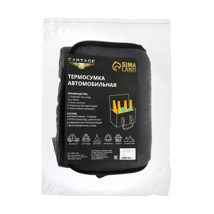 Сохранить продукты свежими, охлажденными или даже замороженными вне дома и без стационарного холодильника можно легко и просто при помощи термосумки Cartage! Термосумка Cartage Т-15 устроена по принципу термоса, причем, такой аксессуар может не только поддерживать низкие температуры, но и сохранить продукты горячими. То есть, вы всегда сможете полакомиться мороженным на пляже, угостить друзей теплой пиццей на пикнике за городом, и пообедать горячим супом на работе. Термосумка устроена очень просто – она имеет внутри изоляционный антибактериальный фольгированный слой, в случае если в сумке разлился напиток, или вытекло варенье, достаточно просто протереть сумку влажной тканью, или антибактериальной салфеткой. Такой сумкой очень удобно пользоваться, если вы ведете активный образ жизни и много времени проводите в дороге и на ногах. Для более долгого сохранения низких температур, советуем использовать аккумуляторы холода.