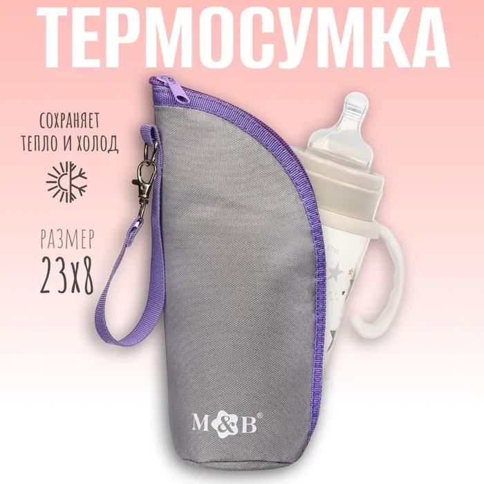 Термосумка для бутылочки M&B на молнии, серая — Характеристики