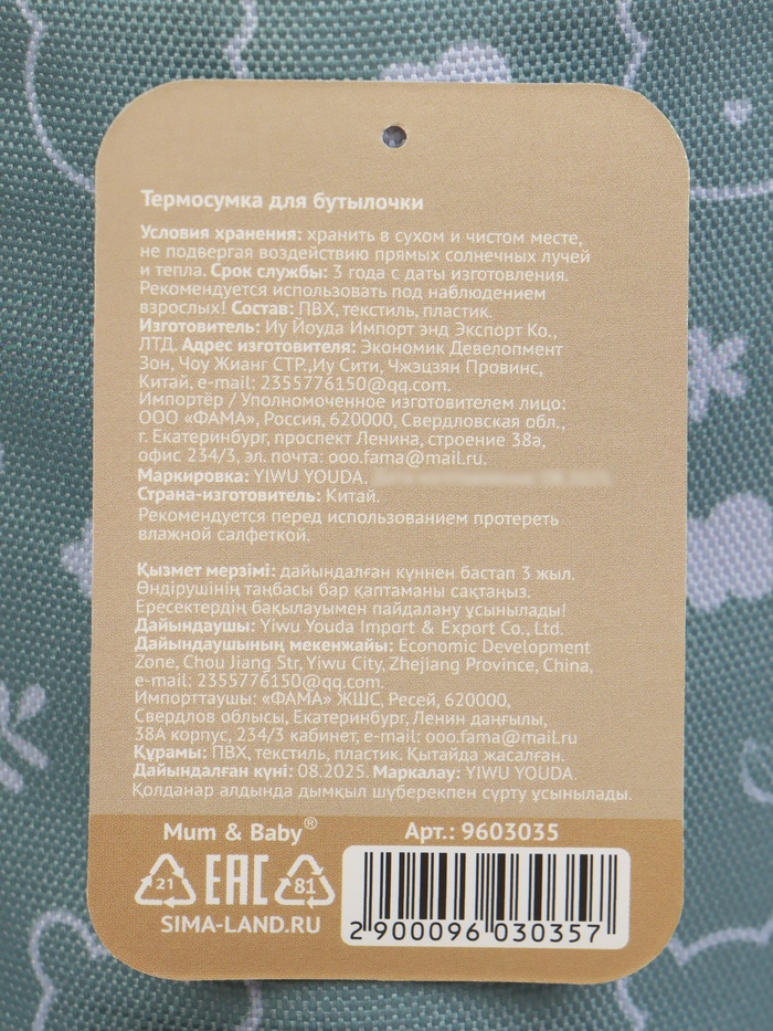 Термосумка для бутылочки «Мишка», форма тубус — Характеристики