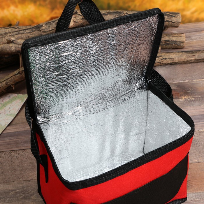 Термосумка на молнии, объём 12.5 л, наружный карман, регулируемый ремень, цвет чёрный
