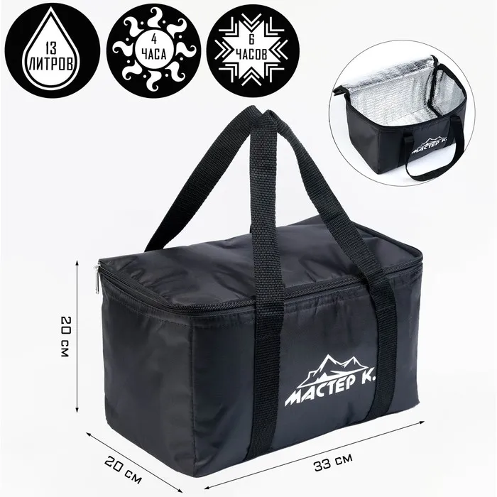 Термосумка "Мастер К." на молнии, объём 13 л, чёрная — Характеристики