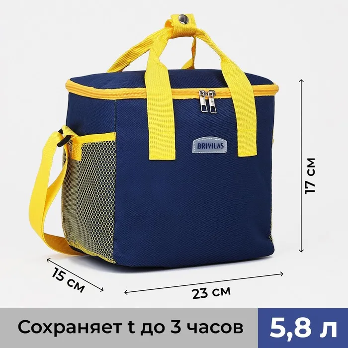 Термосумка на молнии, 5,8 л, 2 наружных кармана, цвет синий — Характеристики